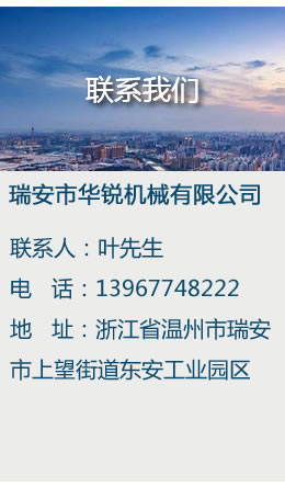 瑞安市華銳機(jī)械有限公司的誠信、實(shí)力和產(chǎn)品質(zhì)量獲得業(yè)界的認(rèn)可。歡迎各界朋友蒞臨參觀、指導(dǎo)和業(yè)務(wù)洽談......【查看詳情】
